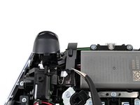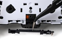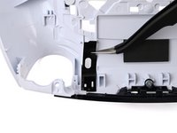 Insert the flat edge of an opening pick between the black portion of the rear trim and the top cover, near the joystick lever.