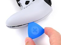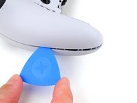 Insert the point an opening pick in the gap along the outside edge of one of the controller grips, near the bottom.