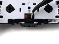 Use a pair of tweezers or your fingers to lift and remove the back button switch, being careful not to lose the plastic covers on the sides of the switch.