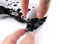 Pushing slightly towards the L and R buttons, lift the rear case off of the controller and remove it.