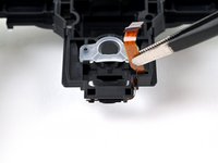Use a pair of tweezers to disconnect the RB back button ribbon cable connector from the motherboard by griping the blue tab on the ribbon cable and pulling away from the connector.