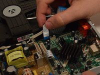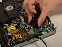 Pull the second white 1cm wide tab between the motherboard and power supply board.