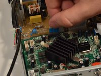 Pull the larger white 9 pin power cord that connects the power board to the motherboard.