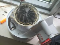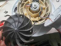 I rinsed it with water There are 3 levels of screws to take out: The white outside cover, this black capsule in frame #2 and the rotor in my hand (image #3).