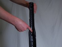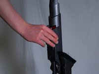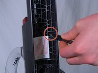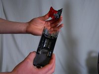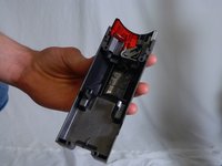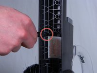Pull on the plastic case below the power and brush bar buttons to separate it from the Dyson.