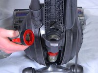 Locate the red tab on the frontside of Dyson.