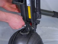 Locate the removable hose on the back of the Dyson.