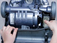 Pull the clear hose out of the gasket on the right side of the vacuum under the axle.