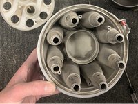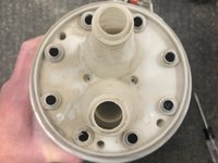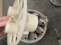 Disassemble cyclone by pointing white plastic portion upward and remove 6 T15 screws.