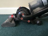 When reassembling, it is easiest to put the vacuum in its upright position to insert the axel screws.