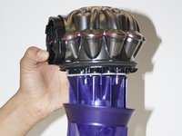 Pull down on the black tube-like part of the silver cyclone body to remove it from the cyclone of the Dyson.