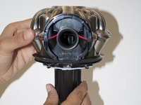Flip the vacuum over so that the silver cyclone part of the vacuum is now at the base.