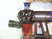Locate the blue knob labeled "Filter" at the center of the cyclone.