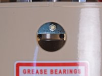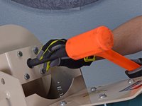 Use a 9/16 inch socket to remove the two bolts securing the weighted hood.