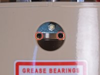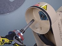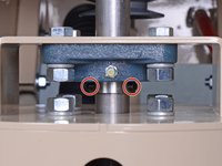 Use a 5/32 inch hex bit with an extension to loosen the two set screws securing the head assembly shaft to the upper bearing.