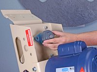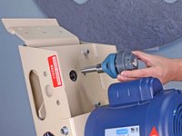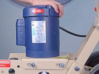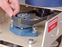 Use a 9/16 inch socket to loosen, but not remove, the four bolts securing the motor mount to the frame, two on each side.