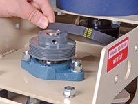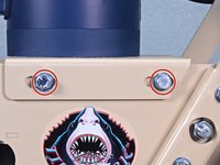 Use a 3/16 inch hex key to remove the three bolts securing the blade retainer.