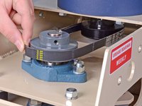 Use a 1/8 inch hex key to loosen the two set screws on the lower flange bearing.