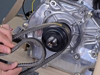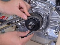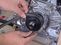 Slide the engine towards the front of the frame to relieve tension on the belts.