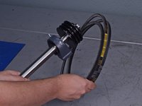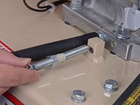 Use a 9/16 inch wrench to loosen the lock nut on the belt-tensioner bolt.