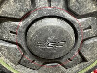 Remove the rear wheel hubcaps (see image for reference). These can be gently pried off using a tool of your choice—a flathead screwdriver works well.