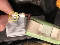 Disconnect the battery connector by squeezing the tab on the female end of the connector. The battery can now be replaced.