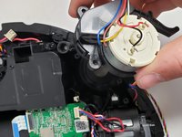 Using a Phillips #00 screwdriver, remove the four screws securing the wheel assembly in place. Begin by loosening each screw slightly to evenly distribute pressure, then fully unscrew them one at a time. Be sure to set the screws aside in a safe location for reassembly later. Gently lift the wheel assembly out of its housing.