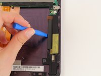 Disconnect the ribbon cable by placing a plastic opening tool under the black plastic tab that is on the opposite side of the port as the ribbon cable.
