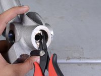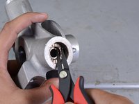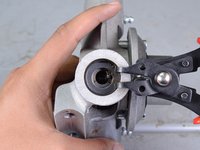 Use a pair of snap ring pliers to remove the retaining ring at the bottom of the lower feeder assembly.