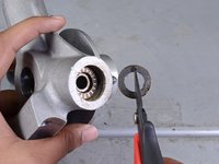 Use a pair of needle-nose pliers to remove the first thrust washer from the assembly.
