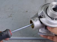 Use a flathead screwdriver or other long tool as leverage to remove the lower bearing carrier from the assembly.