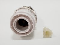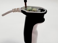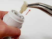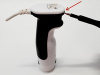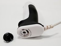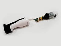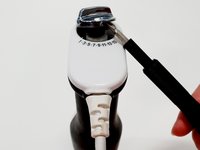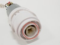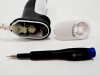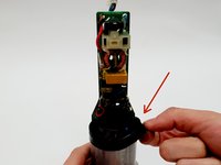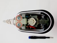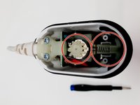 Proceed to saw all the way around the top casing, approximately 5mm from the button. If done correctly, the smaller component should slide off, taking the motor and circuit board with it. You may need to employ a twisting and pulling action.