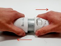 Press the eject buttons to release the attachment from the motor body. With this done, pull the lowest casing away.