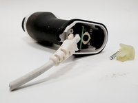 Remove two screws fixing to the plastic component holding the circuit board and chord.
