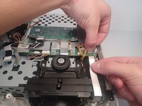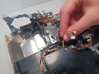 Press on the metal connector and firmly pull on the remaining ribbon cable.