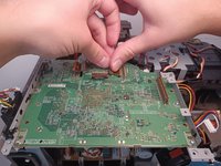 Press on the metal connector and firmly pull to remove the remaining ribbon cable.
