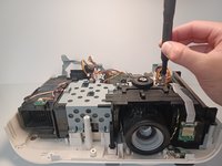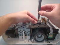 From the back of the projector remove three 6 mm Phillips #1 screws.