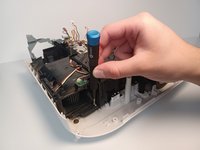 Remove the 9.5 mm Phillips #1 screw located behind the power supply.