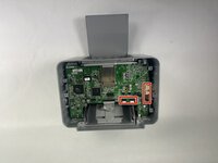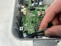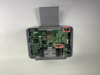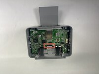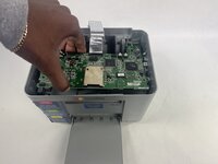 To remove the board, you will have to gently pry the outer casing as shown in the image to get the power jack and USB connector to clear the plastic. From there, simply slide out at an angle to get the board free. You should be left with the board as shown in the second picture