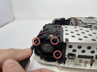 Use the Phillips #1 to remove the 3 silver 7 mm screws that secure the fan frame.