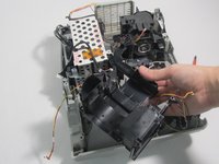 The fan is set in the projector below the lamp and lens. It helps to cool down the body of the projector when it is working hard so that it does not overheat. Before replacing the fan, make sure it cannot be fixed from just cleaning and re-greasing the fan.