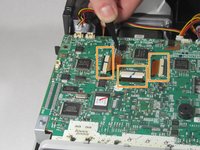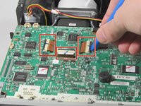 Using a plastic opening tool, gently pry up the black tabs holding in the ribbon cables on the motherboard.