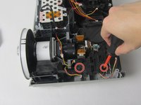 Remove the screws from the L-shaped lens assembly that you see under the motherboard.