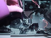 • Now, flip the projector back over and pry the top of it open revealing the inside of the projector.