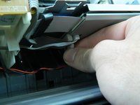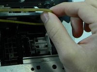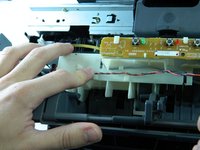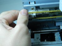 Use the flat end of the spudger to push the white button next to the ink cartridge carrier.