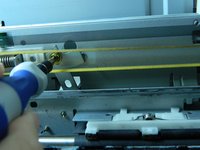 To take down the CR timing belt (yellow), first use a Phillips #1 screwdriver to loosen the screw that helps keep the "stopper holder pulley" in place.