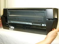 Disconnect all data connections coming into the printer such as USB, networkd cables, firewire, etc. as well as removing the power cord.