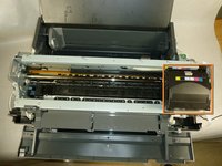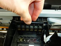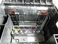 Also a 4 - 5 mm Allen key can be used to unhook the CSIC plate - place angled end of key behind carriage, & feel for the edge of the clip. Then pull forward on allen key, & up on the CSIC plate. Do both sides. Take care not to damage the encoder strip.