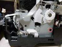 Using tweezers, disengage the right tab from the back right panel of the carriage unit.