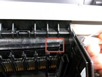 Reaching from the back of the carriage unit, disengage the two tabs that hold the CSIC assembly in place.